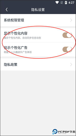 4、取消勾选显示个性化内容和显示个性化广告