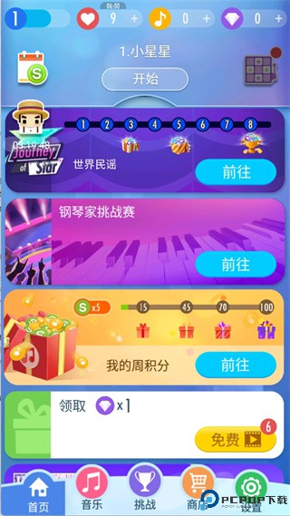 4、随着音乐的继续,屏幕上轻点其他部分,能获得音乐和钻石奖品,点领取框,也可以解锁另外的歌曲。