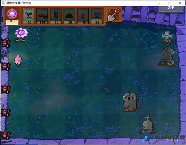 推荐战术:上来造向日葵,之后补100阳光的豌豆,之后在阵型稳定下步齐两列向日葵,经济好了以后用上3管豌豆和双倍速豌豆,以后可以升级为机豌豆,在豌豆前面放火炬树墩,最前面顶大墙果。