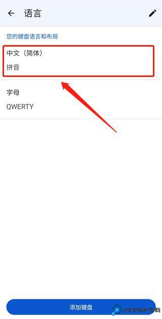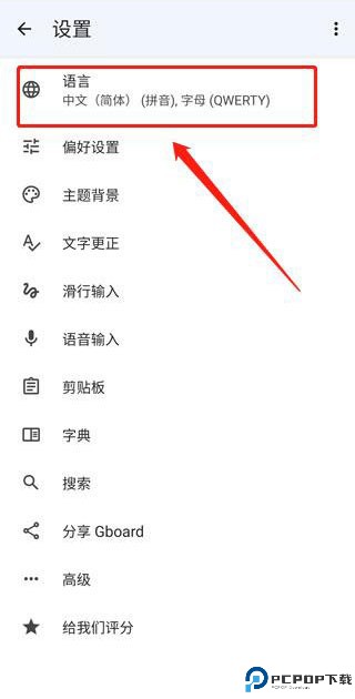 3、这个时候就可以看到谷歌键盘的基本设置了,点击顶部的语言;