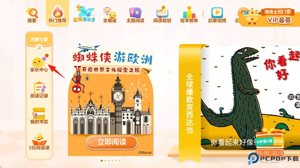 1、打开叫叫绘本APP,在首页点击家长中心;