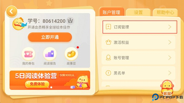 2、点击账户管理-订阅管理,可以在里面关闭自动续费或连续包月服务。