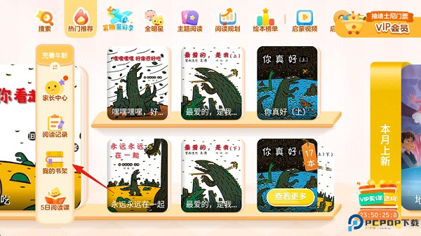 1、打开叫叫绘本APP,在首页点击我的书架;