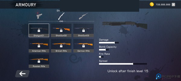 2、在游戏开始前点击右下角ARMOURY,进入商店购买和解锁新的武器;