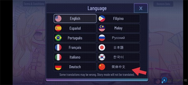 1、进入到游戏之后点击右下角的语言设置。