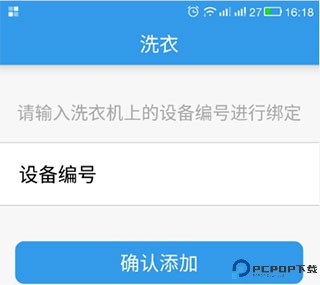 新用户注册登陆后点击"添加设备",并在 跳转页面输入洗衣机上的编号,设备添加成功。