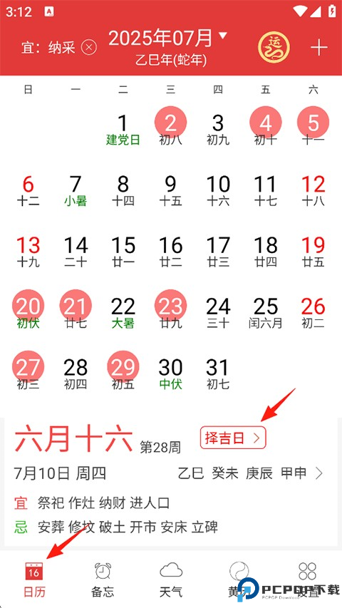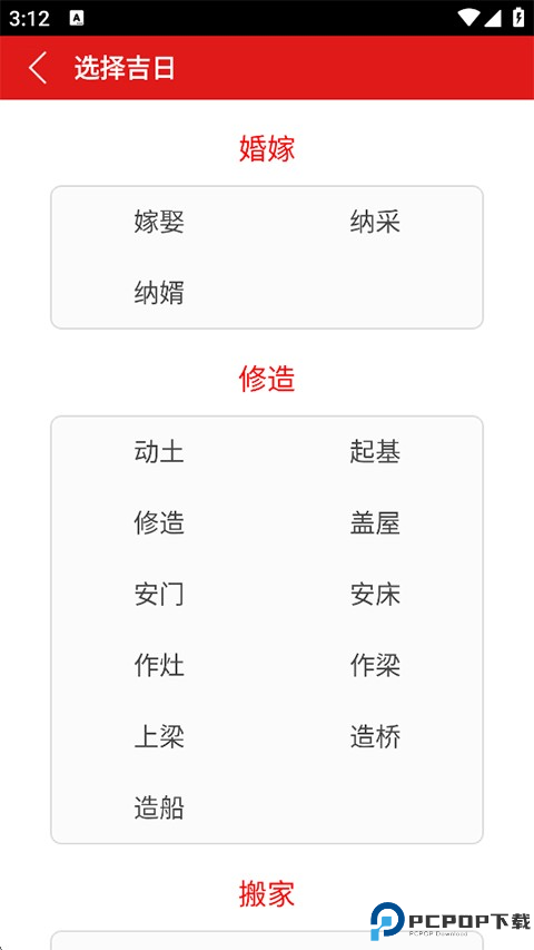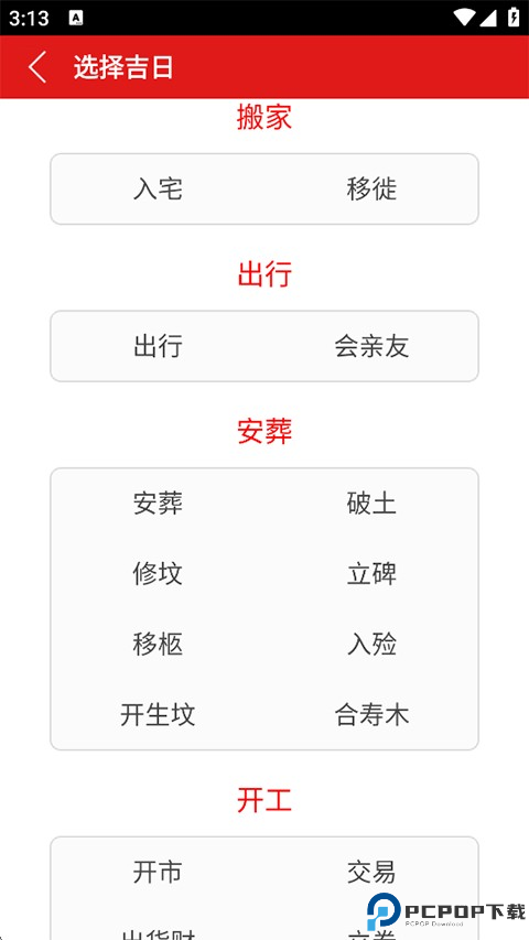3、往下滑动还有搬家、出行、安葬以及开工等多个分类;