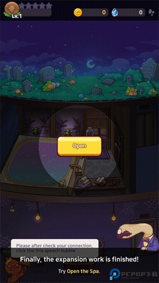 1、玩家进入萌萌幽灵旅馆安卓版游戏后,点击“Open”,酒店便正式开始营业了。
