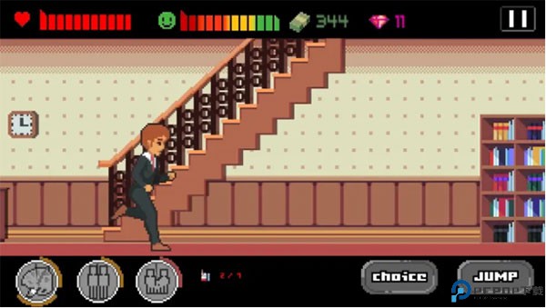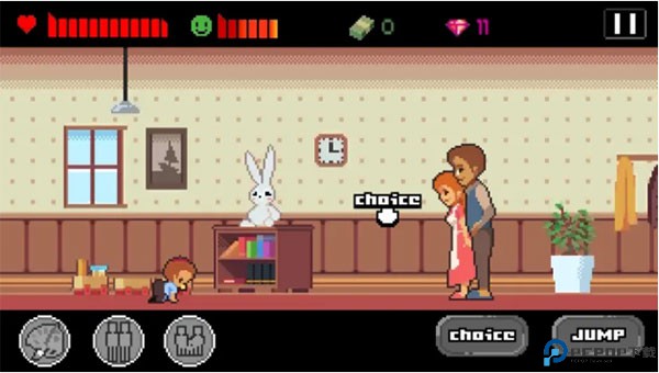 1、游戏的玩法很简单,就是横版跑酷的玩法。在游戏的右边有两个按键进行操作,一个是选择键,当你遇到某些特殊事件时,比如选择兴趣,选择对象、买车买房等等,这将影响你后面游戏的结局。