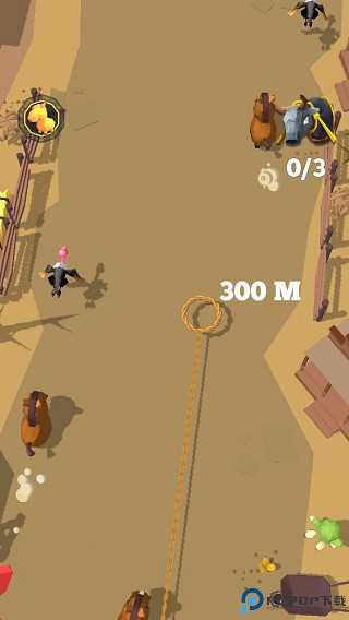 1、点击开始游戏,牛仔会将绳索抛出,在绳索回来的过程中,左右横摆,来套取更多的小动物。