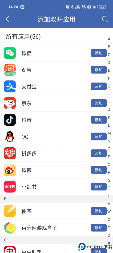 3、就会来到添加双开应用的页面,找到你想双开的游戏,添加完成之后就可以进行双开了。