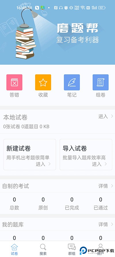 1、打开手机上的磨题帮app,进入到首页,点击导入试卷按钮。