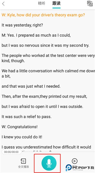 4、点击跟读的话,用户只需要点击录音间,跟着读即可。