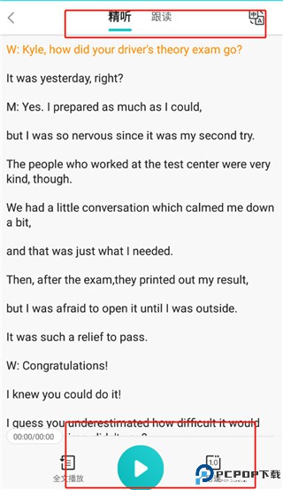 3、用户可以选择精听或是跟读,选择精听的话,用户可以自己调节倍数,点击全文播放即可开始收听;