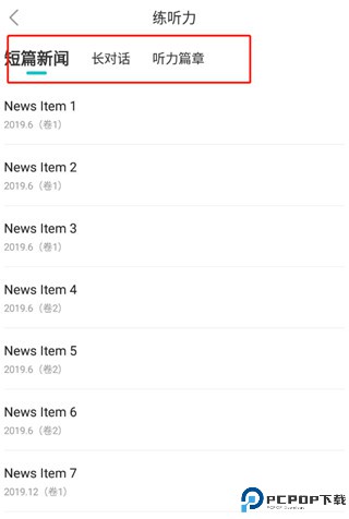 1、打开在本站下载的软件,点击进入首页,点击你想要学习的等级以及学习的板块,如我们选择练听力;