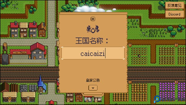 4、根据要求,给我们的王国起一个名字,点击皇家公告按钮,开始游戏。