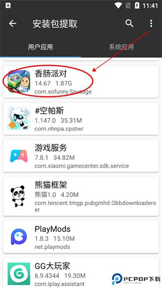 2、找到并点击自己需要提取安装包的游戏(以香肠派对为例);