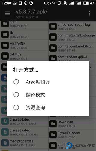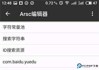 打开方式选择第一个arsc编辑器。然后选择字符常量池。