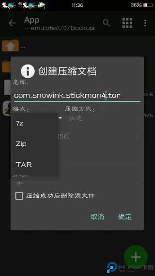 6、打开ZAchiver,把原来的tar格式的压缩包重命名,复制一下他的名称,之后就可以删掉了,再长按修改后的data文件,选择压缩…格式仍然是tar。