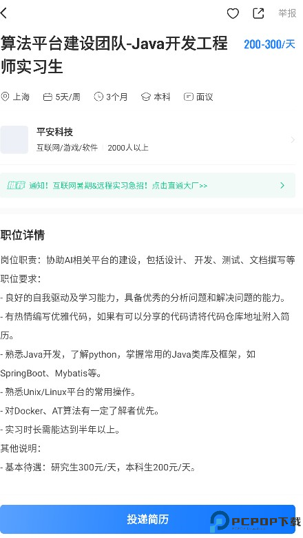 4、暑期实习也是这个软件的一大特色版块,是进入大厂的好机会,千万不要错过。
