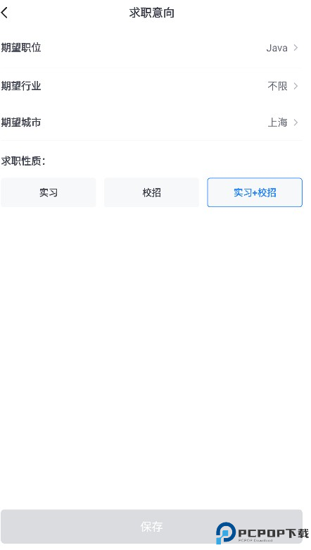 1、首页填写好你想要实习的岗位、城市等信息。
