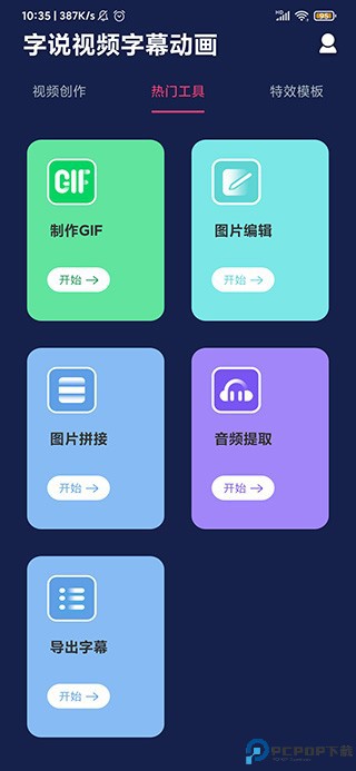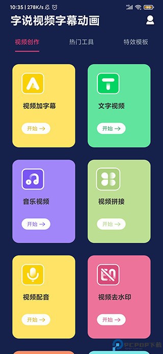 1、在本站下载安装字说视频字幕动画app,进入首页可以看到视频加字幕、文字视频、音乐视频、视频拼接等功能;