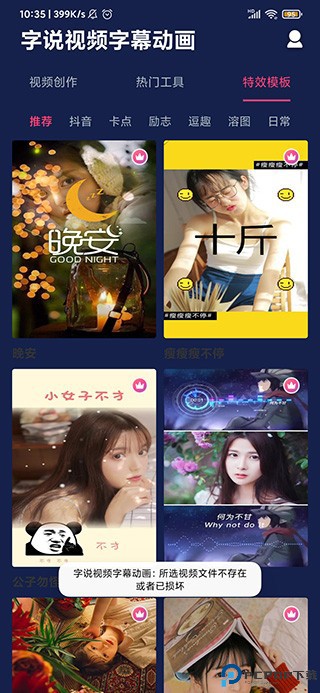 3、而在特效模板中,我们则能够挑选感兴趣的模板来制作好看的视频;