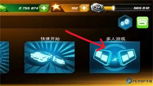 1、打开狂野飙车7界面,点击最右侧的多人联机选项。