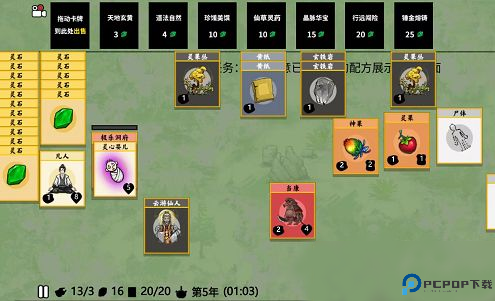 【卡牌堆叠】通过合理的堆叠卡牌完成修炼和创建物品,提升修仙层次。