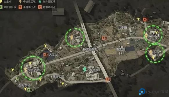 ④ 装卸区(地图西侧):隐藏物资点,较为安全。