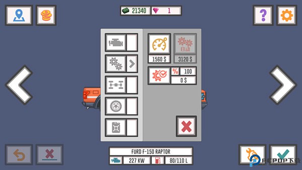 【车辆升级与改装】通过金币或钻石自主升级引擎、悬挂、轮胎与耗油效率,打造属于自己的最强卡车。