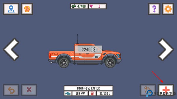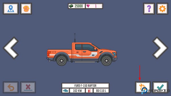1、打开最佳卡车司机2后,选择自己喜欢的货车,点击右下方+按钮;