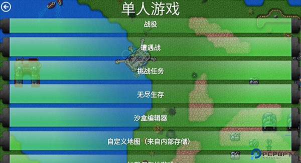 2、进入单人游戏,有战役、遭遇战、挑战任务、无尽生存等选项可以选择