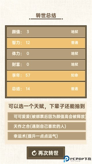 4、去选择百变的人生,玩法比较自由,属性的随机分配看看人生结果;