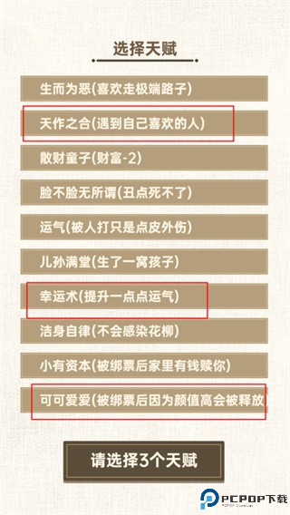 3、从十个当中选择三个天赋;