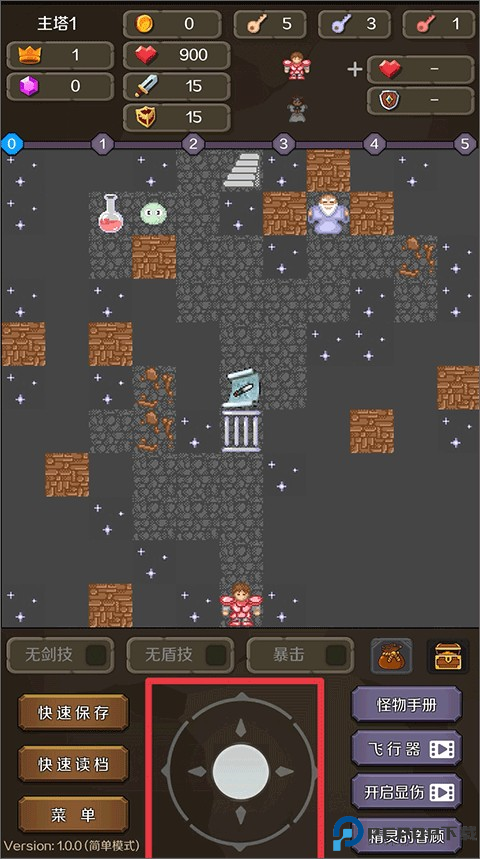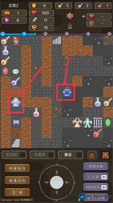 2、获得宝石锄头后,前往主塔17层,记住在此之前绝对不要击败红龙。