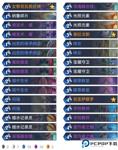 纳迦牧也是一套强势了许久的卡组了,主要得益于毒蛇假发的增强。纳迦牧的玩法就是利用毒蛇假发和纳迦随从的联动效果,不断提供Buff,配合斐拉戈斯、晋升者之赐等卡牌制造大哥随从,平推对手。纳迦牧最强势的地方在于它在前期可以很容易地保住并养大一个滑矛纳迦,持续输出的话,伤害不容小视。