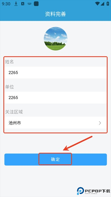 4.设置姓名--单位--选择关注区域后点击“确定”