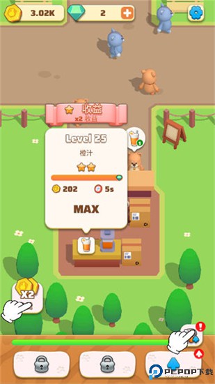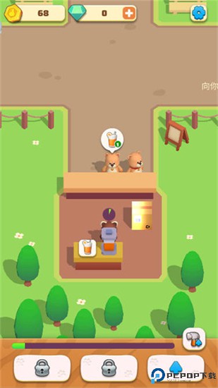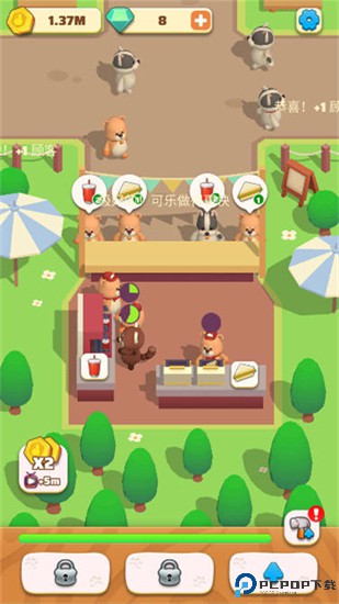 3、随着金币累积与任务完成,可解锁更多摊位与不同动物员工,每个角色有独特技能。