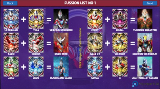 合成公式:游戏中不同的奥特曼卡牌组合可以融合出欧布奥特曼的不同形态,各有独特外观、技能与属性。比如: