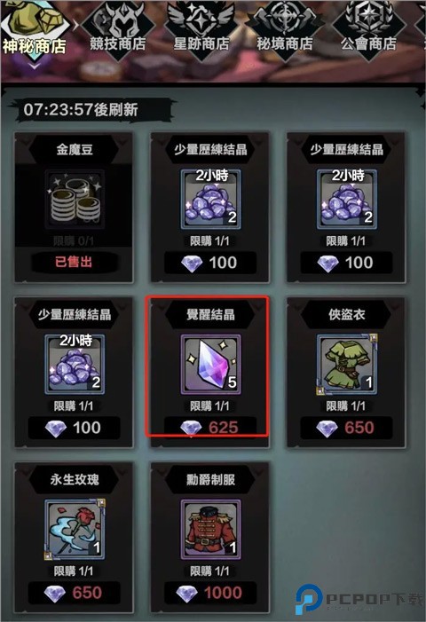 4、秘境商店秘境4人组是主要兑换物品,根据自身队伍需要兑换。觉醒材料和金豆子也可以兑换,尤其卡觉醒的时候。