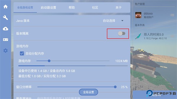 5、如果没看到村民版本的话来到设置里打开版本隔离,重启游戏。