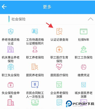 进入更多,找到社会保险,点击下方的认证记录查询进入,查看相关的信息