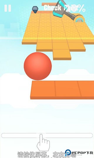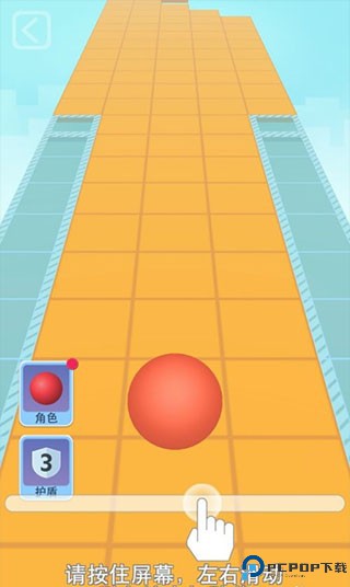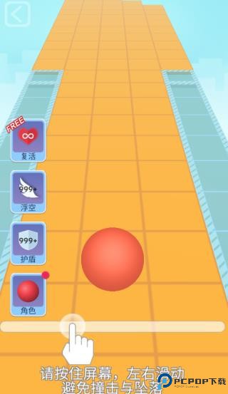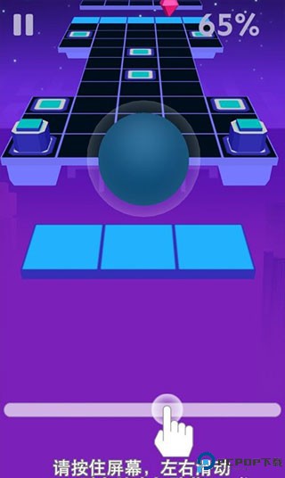 2、进入游戏后通过按住屏幕控制住小球左右滑动来进行游戏。