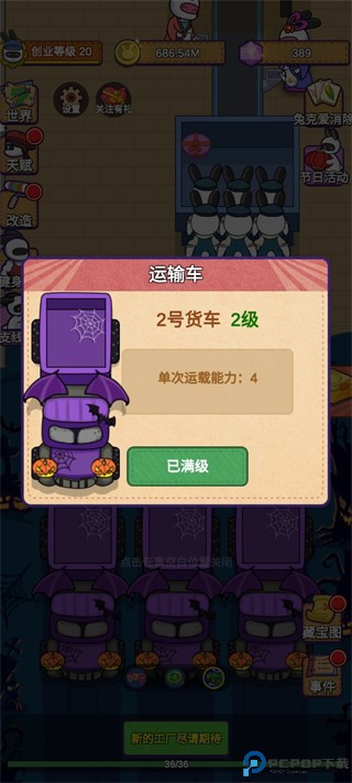 1、进入兔克创业记手游,在主界面底部找到升级1号货车按钮并点击,系统随即触发金币检测机制。