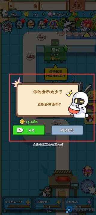 2、在这里我们要做的就是通过用售卖出商品赚来的金币去升级一些设备