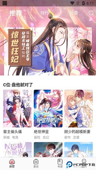 1、下载打开免费漫画神器app,首页上推荐了各种热门的漫画;
