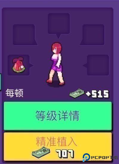 顾客在吃了许多“食物”以后会随缘变异并进化到下一个阶段,最后“完全满意”状态就是化成一滩绿色的辐射液然后掉落大量金钱。
