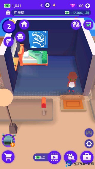 第一眼看上去的感觉就是简陋,但好在也是一个遮风挡雨的地方,后续玩家可通过打工赚钱来购置家具,逐步的增加房间内设施。