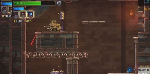 3、可看见放光的图标,按下跨越穿过薄平台